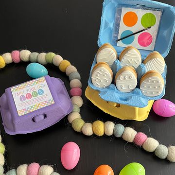 12 mini eggs, heat sealed in pairs. 6 decorated eggs and 6 plain white eggs to paint whatever you'd like!